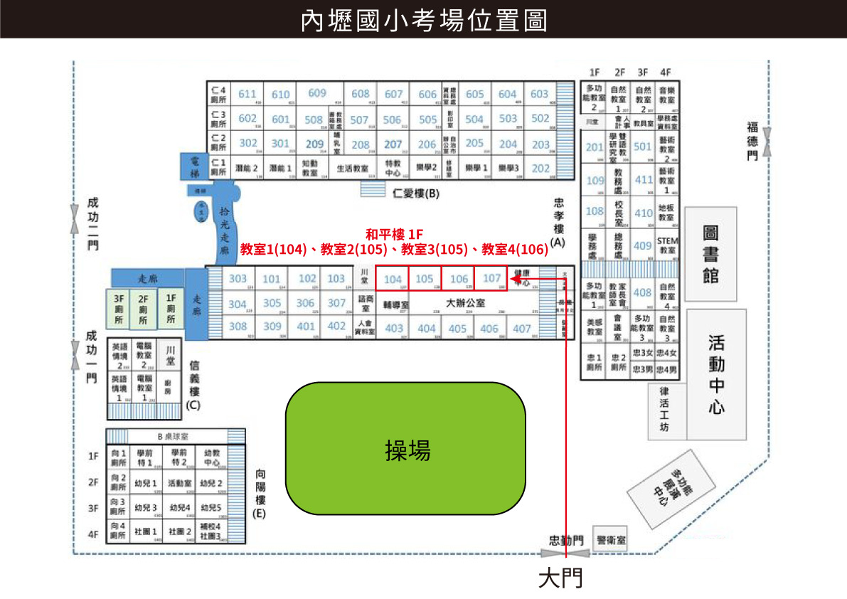 教室:和平樓 1F 教室1(104)、教室2(105)、教室3(106)、教室4(107)