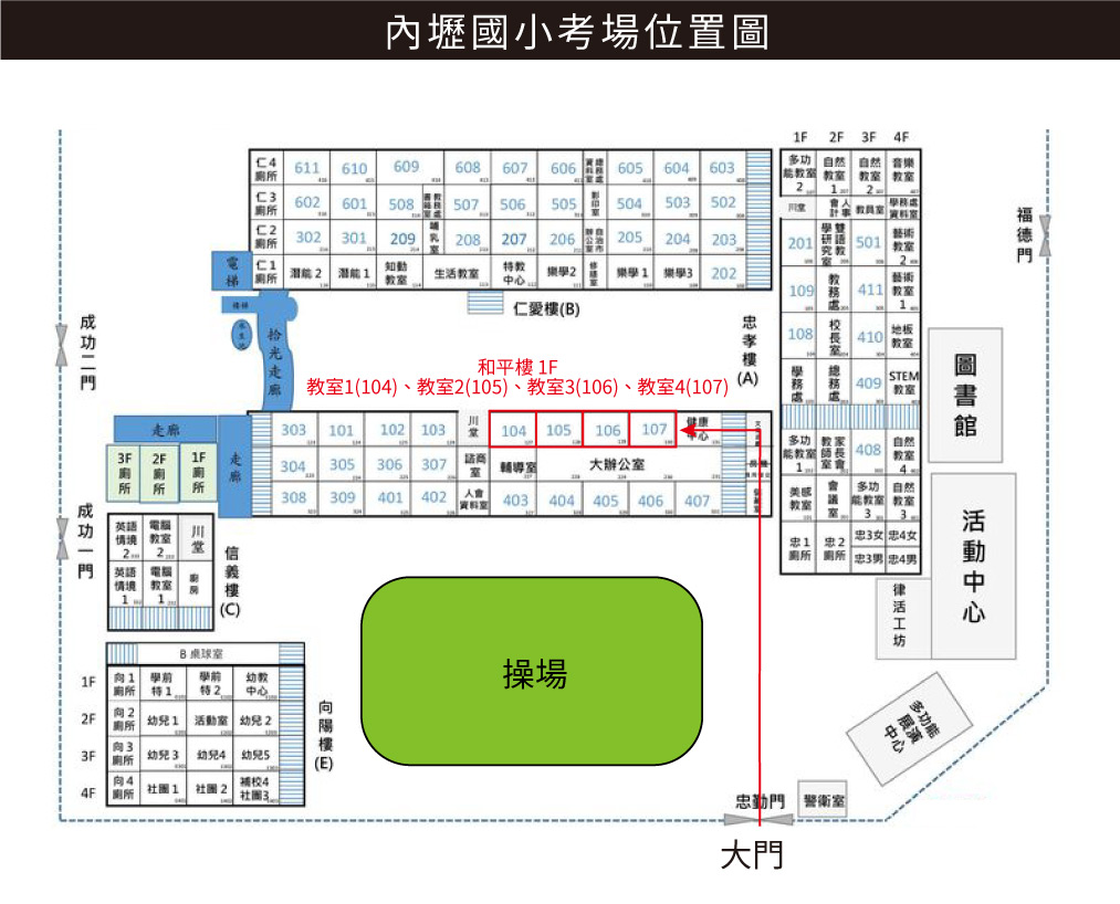 考場:內壢國小 地址:320桃園市中壢區福德路20號 <點此連結GOOGLE地圖>