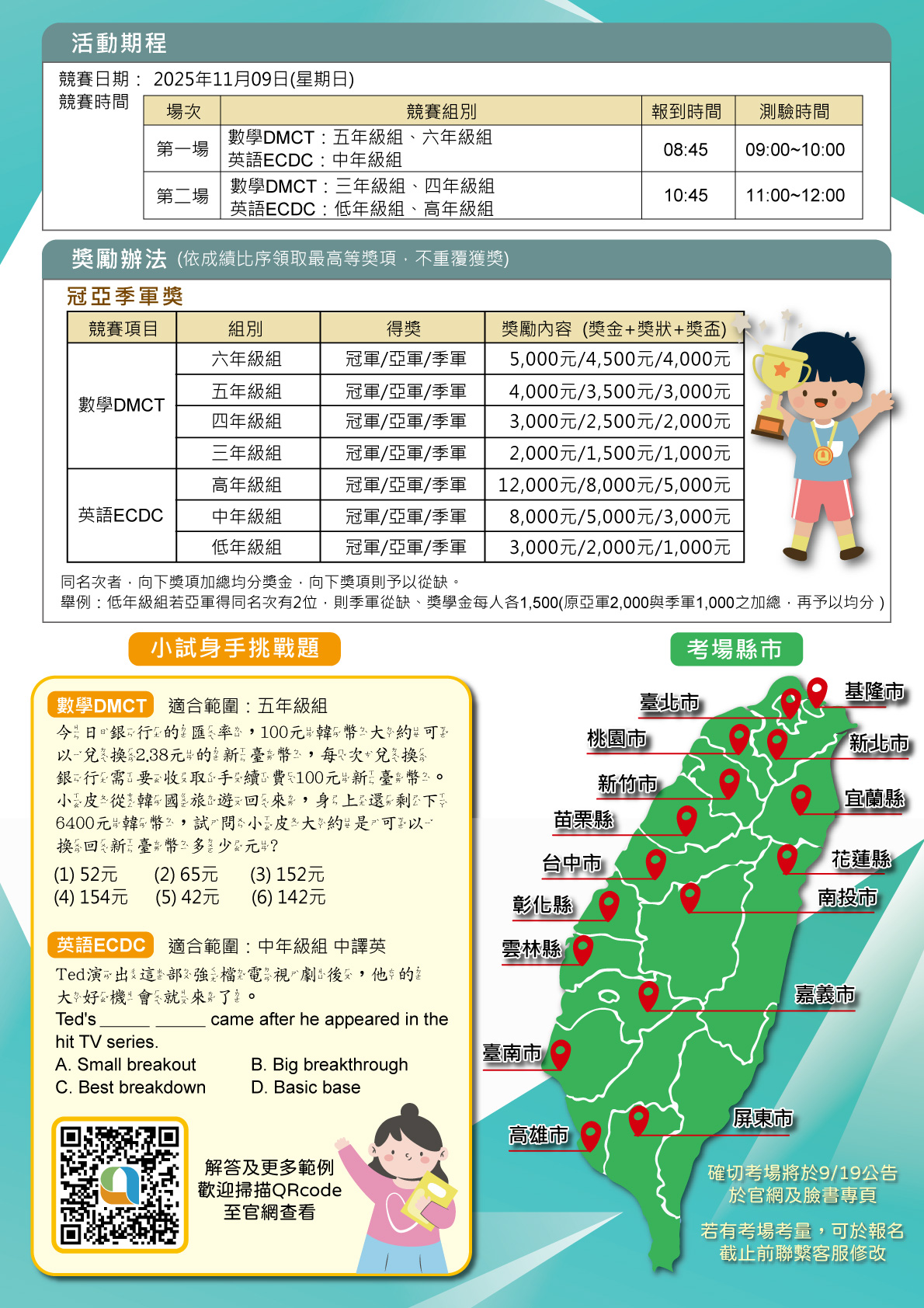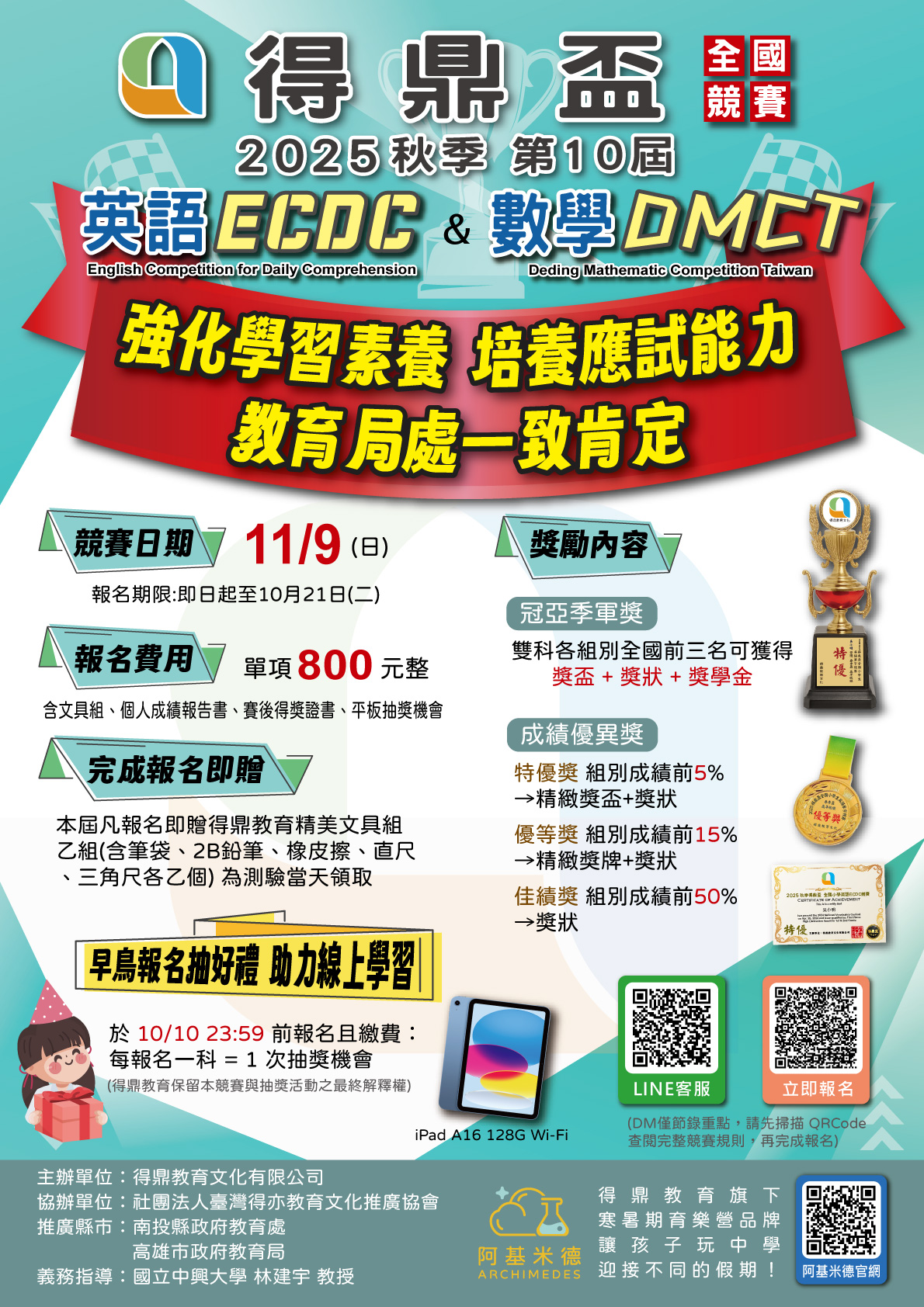 2025秋季盃-數學DMCT競賽-國小三年級 - 報名專區| 得鼎教育文化有限公司
